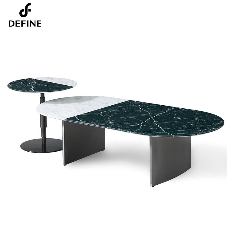 Unique intered stone marble round oval living room coffee table set