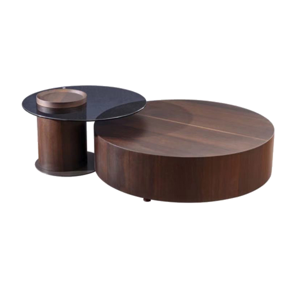 Walnut wood veneer round coffee table